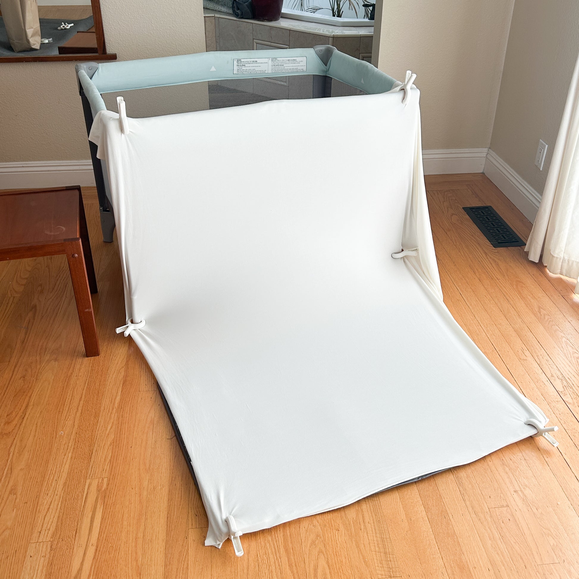 Pull tight across chairs, a pack and play or couch cushion for an instant studio at home by using the included clamps.